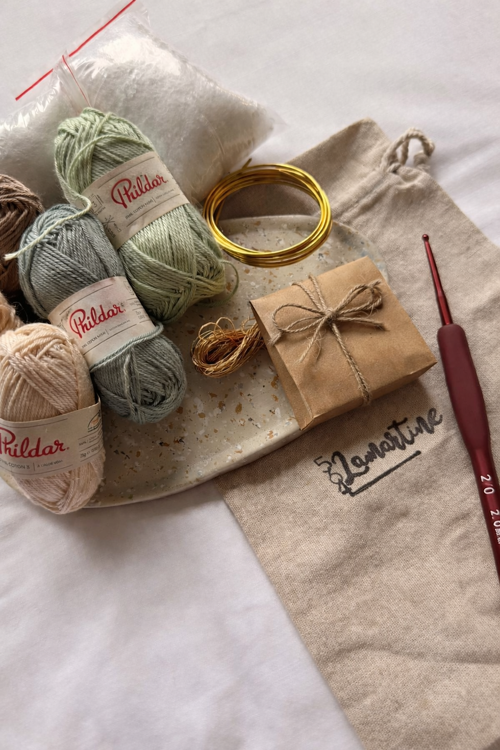 Kit sans crochet : tout le matériel, sans le crochet, vous utiliserez votre crochet personnel.